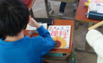 理科の学習の様子です。みんなで協力して実験を進めています。