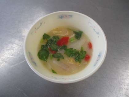 せりの京野菜を使った白みそ仕立てのみそ汁です。