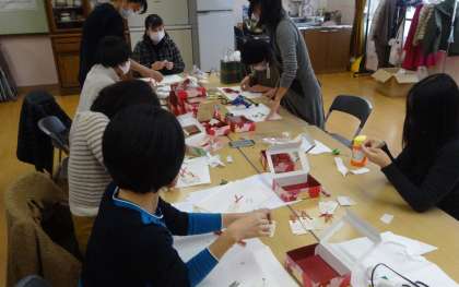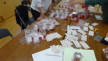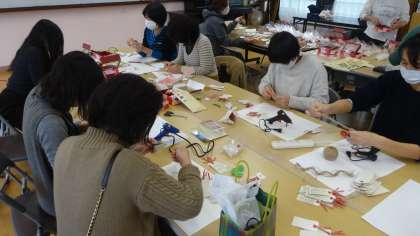 6年生の保護者の方々で,卒業式に向けてコサージュ作りです。3月には卒業式を迎えます。卒業生を祝うために,準備が着々と進められています。ありがとうございます。