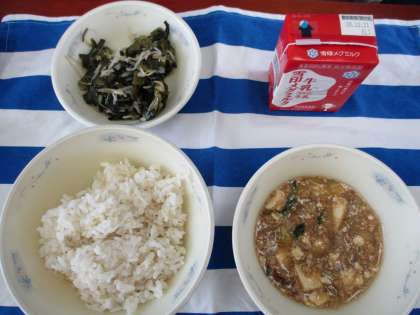 給食でも豆板醤を使いました。