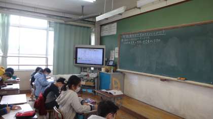 割合の学習です。希望者が定員の何倍になるかを考えます。「もとにする量」と「くらべる量」がそれぞれどれなのか考えながら立式していきます。