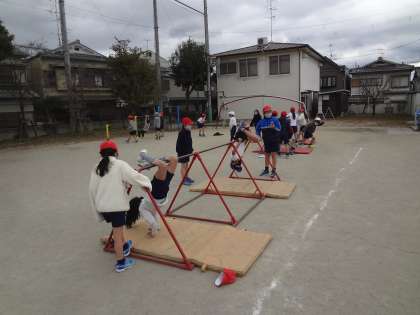 体育科では,単元「鉄棒」をしています。今日は特に気温が低くて鉄棒を握る手もすぐに冷えてしまいましたが,体をしっかりと動かして自分のめあてにそって練習をがんばっている子どもたちの姿がありました。