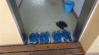 前回は2階のトイレのスリッパがきれいにそろっていることをお伝えしましたが,今日は3階がきれいにそろっていました。4〜6年生が利用する階になります。これからも「みんなで美しく」を心掛けたいです。