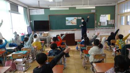 下鴨警察署の交通課の方に来ていただき,交通安全教室を開催しました。例年ならば入学当初に実施していますが,今年は冬休みを迎えるこの時期に開催しました。
