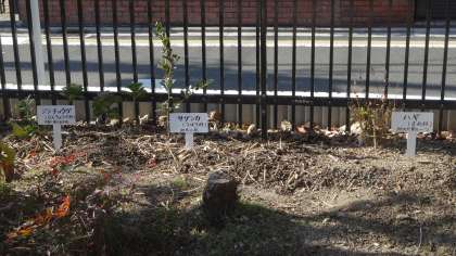 今年度,学校運営協議会環境委員会の方々のご協力のもと,本館周りの環境整備を進めています。12月21日の作業日でも,樹木の剪定や苗植え等をしていただきました。また,樹木には名札もつけてくださっています。ありがとうございます。