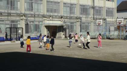 昨日までとはうって変わって,春のような暖かい一日でした。運動場に出てきた子たちは,外遊びを満喫していました。