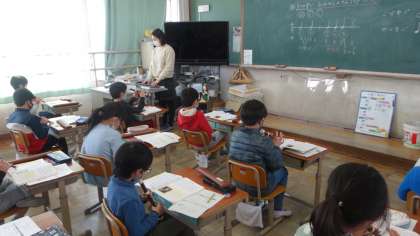 3年生のリコーダー練習の様子です。1年生同様,音を出さないで,指の動かし方を確認しています。