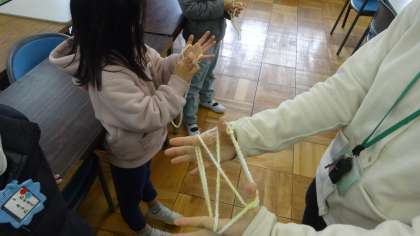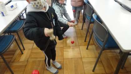 昔遊びを楽しんでいます。こま回しにあやとり,けん玉,お手玉等,いろいろ挑戦しています。ただ,なかなかうまくできないことも・・・。こつをつかんでできるようになると,みんなで大喜びでした。