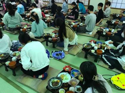 夕食の様子です。しっかり食べて,明日の活動に備えます。