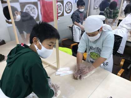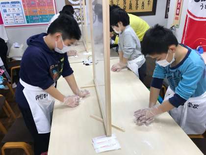 準備が整ったら,早速,うどん打ちです。みんな真剣です。力が入ります。