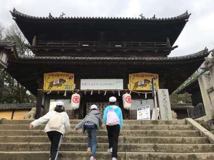 うどん打ち体験の次は,金刀比羅宮にお参りです。上り坂,そして階段をひたすら上がっていきます