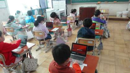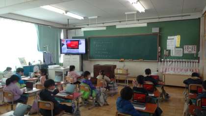 1年生も6年生に負けじと,タブレットパソコンを使って学習です。今日はロイロノートで,各自で描いた絵を交流しました。お互いの作品の良さを見つけ合うことができました。