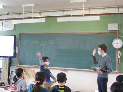 今年もALTのガレス先生と一緒に外国語の勉強をします。久しぶりに英語を使っての会話を楽しんでいました。