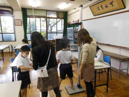 今日も身体計測を行いました。昨年度に比べてかなり大きくなっている子もいたようで,「○○cmのびた!」と話している子もいました。