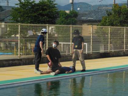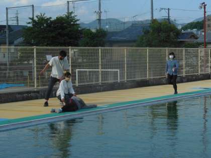 今日は,水泳指導に向けて教職員で緊急時の対応について研修を行いました。もしもの時を想定して,だれがどのように対応していくのか状況を考え,みんなで意見を交わしていきました。
