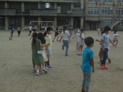 今日は、フレンドリー活動がありました。遊びも2回目となり、少しずつグループ内の距離感が近づいてきたように思います。仲良く話したり、一緒に駆け回ったりと本当に楽しそうにしていました。