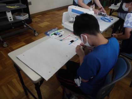 6年生は、家庭科でミシンを使った授業でナップザックを作っていました。