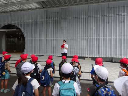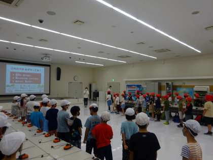 今日は,3年生の社会見学でした。事前に学習してきたことをもとに,工場見学をしました。冷蔵庫の作り方の説明を受けて,一生懸命に学んだ3年生の子どもたちです。
