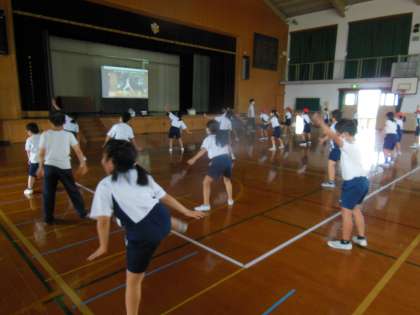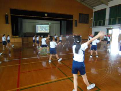 今日も体育館でソーラン節と下鴨音頭について練習をしました。ソーラン節は、とりあえず最後まで踊れるようになってきました。もちろんまだまだこれからの部分もありますが、曲の歌詞やリズムもだいぶしみ込んできたようです。