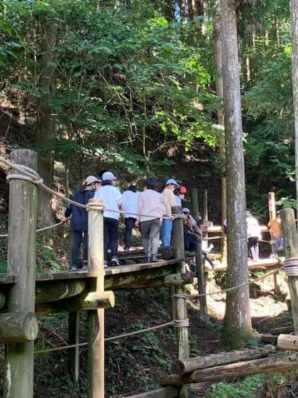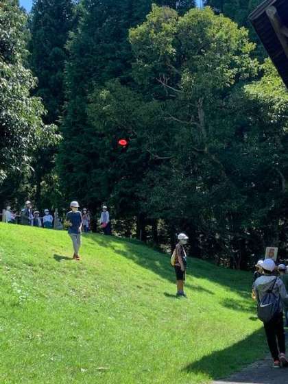 フライングディスクゴルフをしたり、冒険の森でアスレチックをしたりして活動しました。何周も回るなど、たくさん挑戦しながら楽しんでいました。