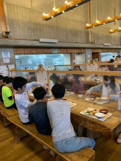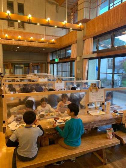たくさん遊んだ後は、お風呂に入りすっきり。そのあとは、お待ちかねの夕食です。