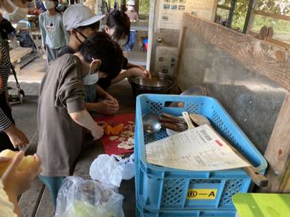 しっかり説明を聞いたり、しおりを見たりグループで協力して、おいしいカレーライスが出来上がりました。