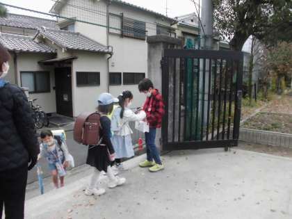 11月28日から30日の登校時間に校門付近で、赤い羽根共同募金活動を計画委員の子どもたちが中心となり、さわやかな挨拶とともに行ってくれています。