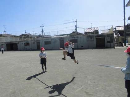 ゴムとびでは、「とべた!」とうれしそうな表情で達成感あり、どんどん上手くなるように練習をしていました。