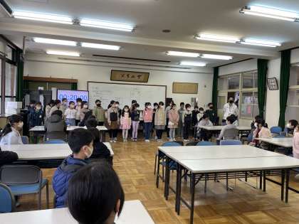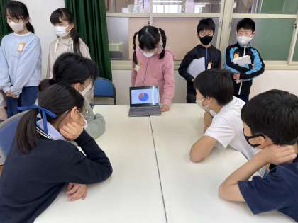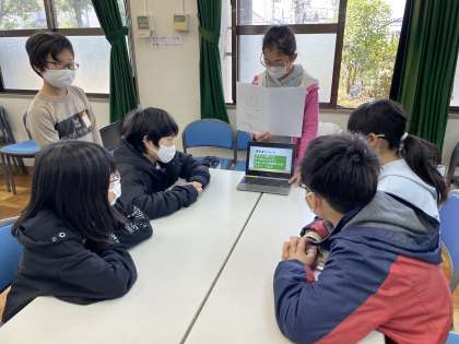 4年生の総合の発表を鑑賞しました。総合の学習で半年間かけて学んできた福祉のことについて、学習発表会よりもさらに詳しく教えてもらいました。4年生がそれぞれ自分で考えたアイデア作品もよく考えられており、とても面白かったです。5年生のみんなも高齢者や障がいのある人を見かけたら、自分にできる声かけなどをしようと思うことができました。発表についてのアドバイスをしたり、質問をしたりなど、充実した交流の時間となりました。
