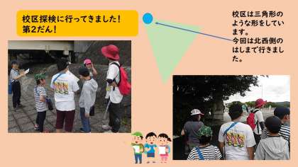 校区探検第2だん!に行ってきました。今回は北大路橋のあたりまで行きました。校区の北西です。そこから中川原公園に行き、地図を見ながら目印になりそうな建物を通り帰ってきました。地図で場所を確認しながら歩くことにも慣れてきました!