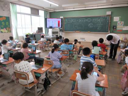 1年生は5月からGIGA端末での学習を始め、今ではいろいろな使い方ができるようになりました!