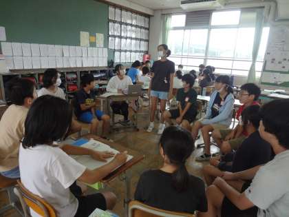 今日は一緒に遊んだ人たちから意見をもらい、もらった意見をもとにもう一度、班で話し合いました。話し合いを通して、お互いの意見を広げたりまとめたりする難しさを感じているようでしたが、一回目の話し合いからは随分上達していました。今後の学習にもぜひ生かしていってほしいと思います。