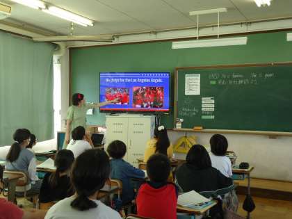 6年生の外国語では、世界や日本で活躍する有名人を紹介する言い方を学習しています。今日はALTの先生に、アメリカで有名な日本人「大谷翔平選手」について、詳しく教えてもらいました。大谷選手のアメリカでの人気は、子どもたちが思っている以上だったようで感心していました。