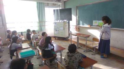 朝の時間に読み聞かせをしていただきました。場面ごとに「えー、どうなるんだろう。」などと言いながら、とても楽しそうに聞いていました。素敵な朝の時間になりました。