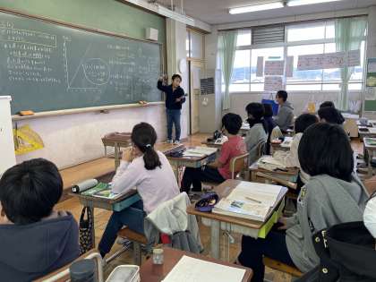 比例の学習が進んでいます。比例の関係を表す式やグラフを学習し、グラフからわかることをいろいろ読み取りました。今までの学習を生かした考え方や、グラフの数値を工夫して読み取った考え方など、たくさんの考え方が出ました。「なるほど…!!」「すごいな…!!」など、思わず声が出ていました。自分にはなかった考え方を知り、様々な視点から考えられるようになってきています。