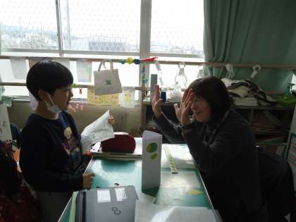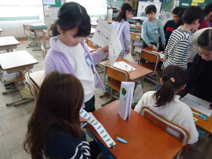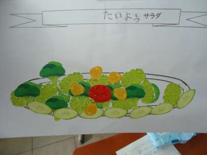 2年生の英語活動では、自分のサラダを作って紹介するために、野菜の言い方や数の言い方を学びました。友達にほしい野菜とその数を伝えて、自分のオリジナルサラダに入れたい野菜を友だちとやりとりしました。正確に数を伝えるために指で数を表したり、"Here you are."や"Thank you."と挨拶したりするなど、気持ちのいいやりとりの工夫について考えていました。