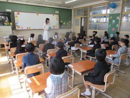 少し緊張しながらも、校長先生の「はなまる」の合言葉の話をしっかりと聴いている姿がとても素敵でした。
