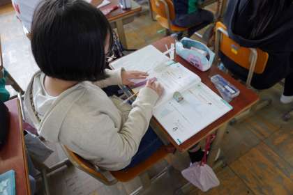 算数科「対称な図形」の学習では、線対称な図形のかき方を考えました。大切なポイントをおさえながら、かくことができていました。