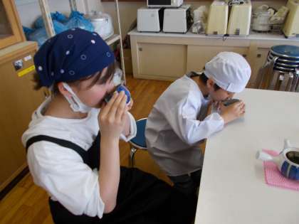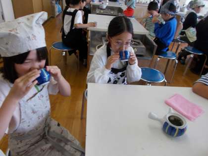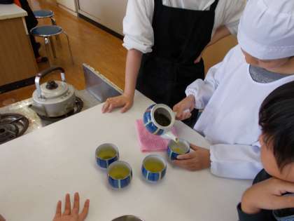 家庭科の学習の時間にお茶を入れて飲みました。