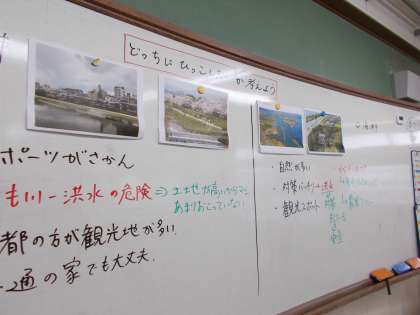 社会科の低い土地のくらしのまとめの時間です。