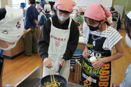 6年生になって初めての調理実習がありました。今回作ったのは、「野菜炒め」。野菜の切り方や炒める順番に気をつけながら調理を進めていました。自分たちで作った料理はおいしかったようです。