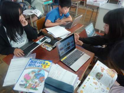 日本の行事をALTの先生に紹介するために準備を進めています。今日はグループで行事について調べたり、話す練習をしたりしました。ALTの先生にどんなことを伝えるといいかなと考えながら内容を考えていました。