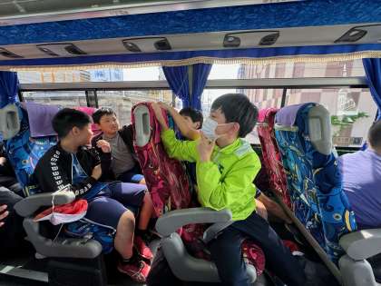 バスの中では、レクリエーション係が考えてくれたゲームをしています。バスの中でも楽しんでいます!
