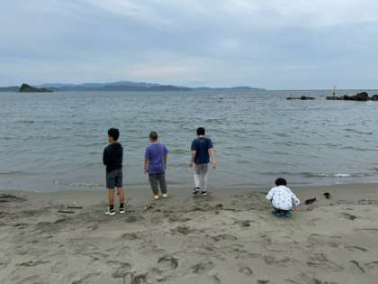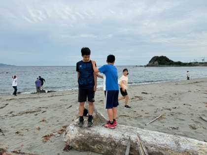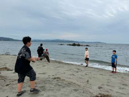 宿の前には海が広がっています。そこで元気いっぱい遊んでいます!!