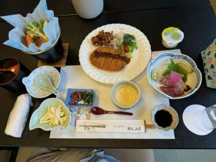 豪華な食事を用意していただき、子どもたちも笑顔で頬張っています。美味しいご飯を食べられることも当たり前ではありません。私たちが気持ちよく過ごせるように準備してくださってる旅館の方々に感謝の気持ちをもって過ごしたいですね。