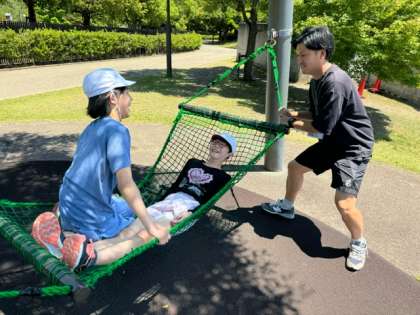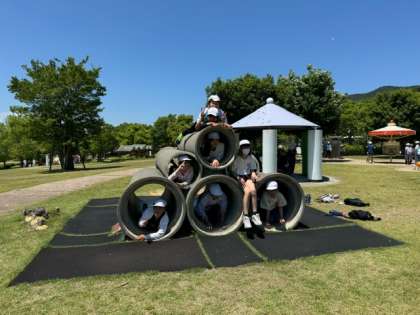 暑い中ですが、外の遊具でも水分をとりながら、楽しく元気いっぱい遊んでいます。