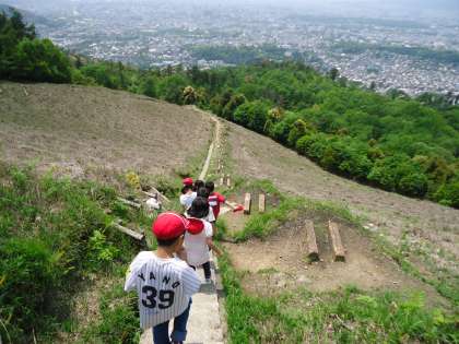5月16日,延期になっていた遠足に行ってきました。大文字山はとてもいい天気で,山頂からは京都市内の様子がきれいに見渡せました。『大』の右はらいの階段の多さに驚いていました。がんばって登った後のお弁当は格別でした。