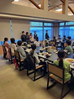待ちに待った夕食です!おいしそうな食事が目の前に並びます。しっかり食べてこれからの活動に備えましょう!