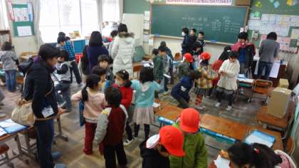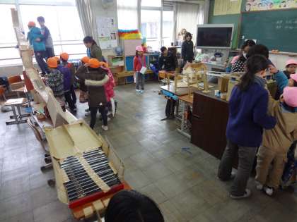 下鴨幼稚園とマクリン幼稚園からも園児のみなさんがたくさん来てくれて,小学生のお兄さん,お姉さんといっしょに楽しみました。年長の園児さんは,4月からは新1年生。小学校の雰囲気を味わえたと思います。