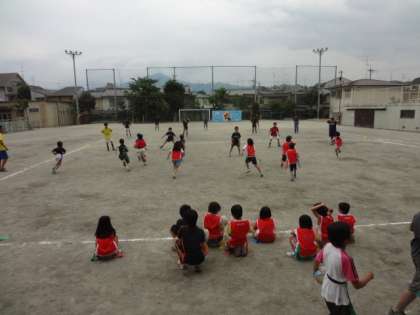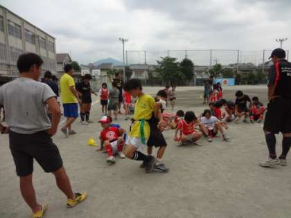 6月15日(土) 午前10時から 下鴨小学校運動場において「第1回 タグラグビー教室」が盛大に行われました。児童25人程が,参加しました。京都府ラグビーフットボール協会から指導員の方を招き,運動の楽しさをタグラグビーを通し教えて頂きました。また,下鴨中学校ラグビー部の中学生も駆けつけて来てくれました。小学校生と中学生の交流が,スポーツを通し深まりました。運動をしている子ども達の表情・姿がとても生き生きとしていました。楽しいひと時を過ごせました。